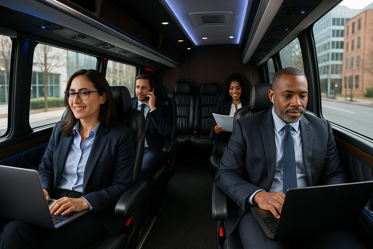 Modern charter buses include features perfect for business groups: